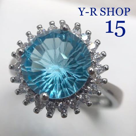 - 15号★煌びやかカットのブルートパーズとホワイトトパーズのエレガントリング★レディース指輪シルバーアクセサリーカラーストーン 新品Y-R