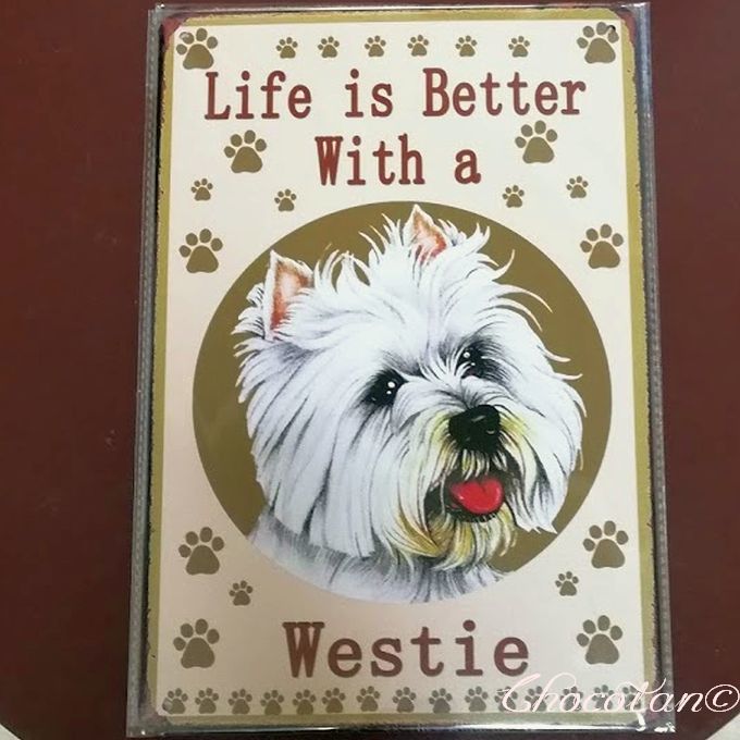 - 【送料無料】ウェストハイランドホワイトテリア ウェスティ ③ 足跡 メタルサインプレート メタル看板【新品】