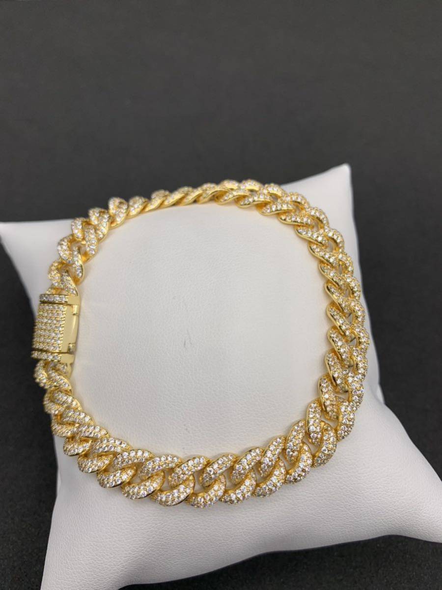- 高品質!ゴールド ジルコニア パヴェ留 9㎜ マイアミ チェーン ブレスレット