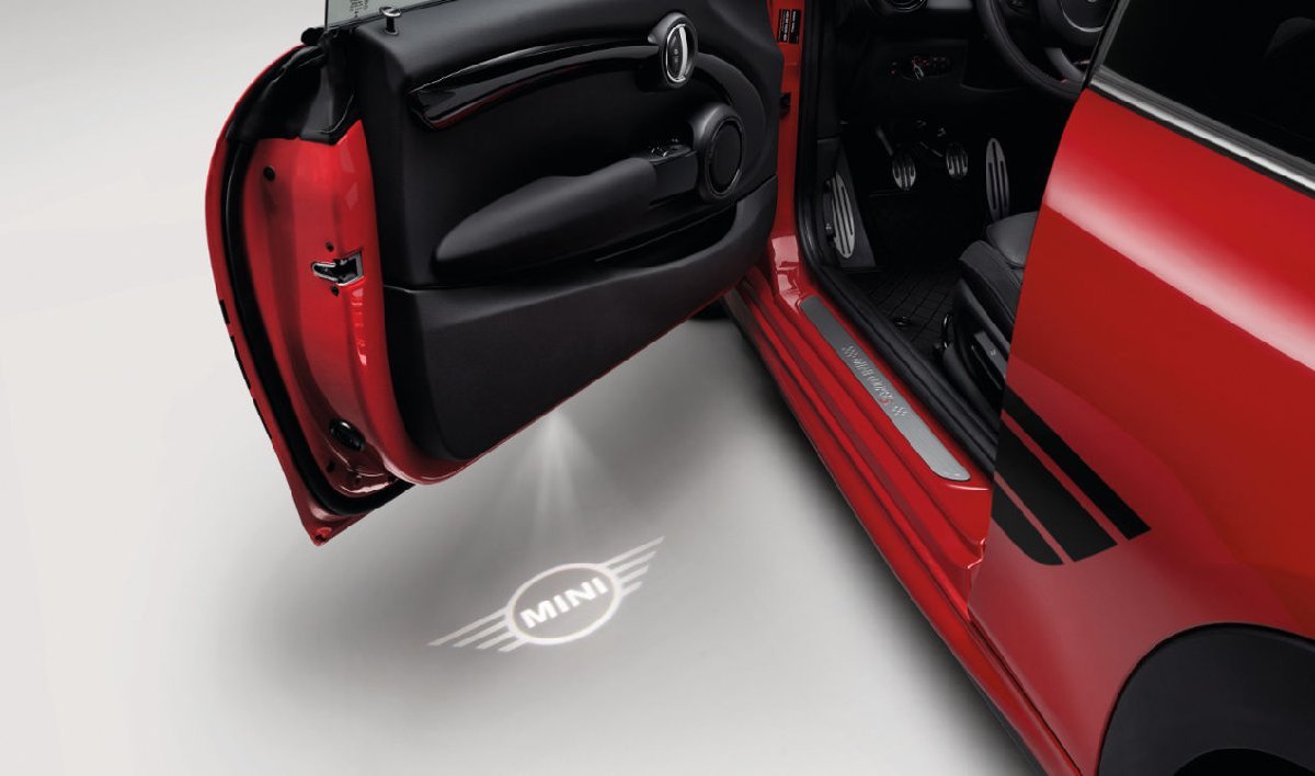 > MINI US純正 LEDドアプロジェクター/フットランプ【GENUINE PARTS】新品/MINIウイングロゴ/JCWロゴ/