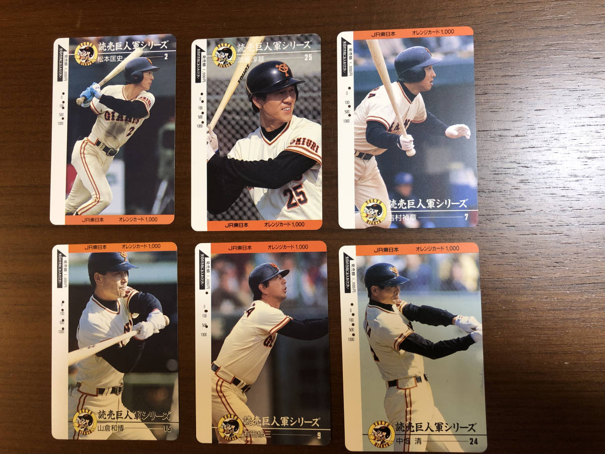> ★ 使用済 オレンジカード 読売巨人軍シリーズ JR東日本発行 6枚 中畑・吉村・山倉・松本・有田・鴻野