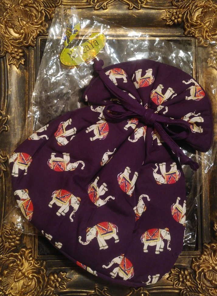 - 即決☆未使用☆可愛い★NaRaYa★ ナラヤ 象さん絵柄プリント キルティング DRAWSTRING BAG 巾着袋 ポーチ 小物入れ ゾウさん 紫