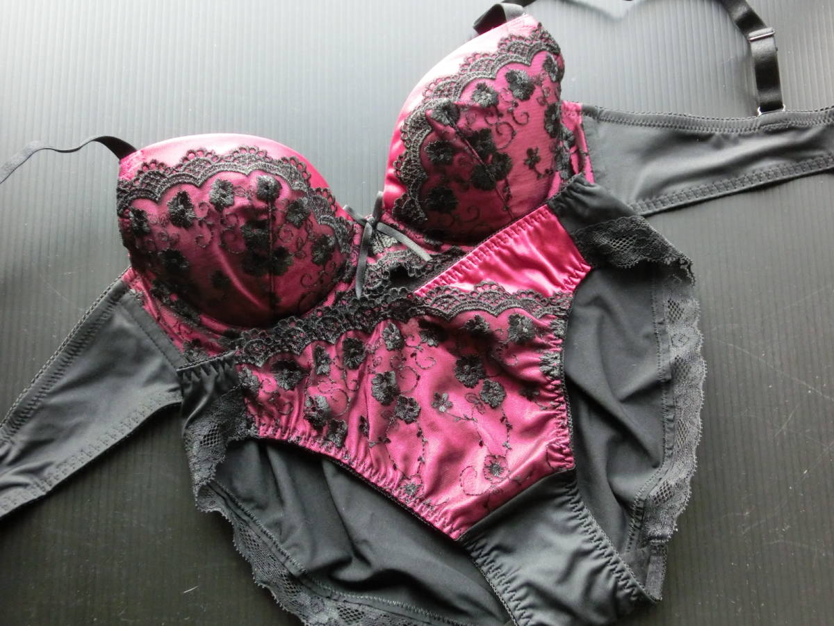 - ☆トリンプ【C65 M】ブラック×ボルドー 二配色ブラジャー・ショーツセット《5-3》