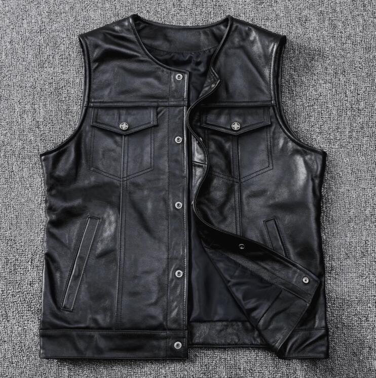 > メンズレザー ハレー ジャーキン ベスト 本革 牛革 大きいサイズあり バイクジャケット ライダース S~4XL 黒