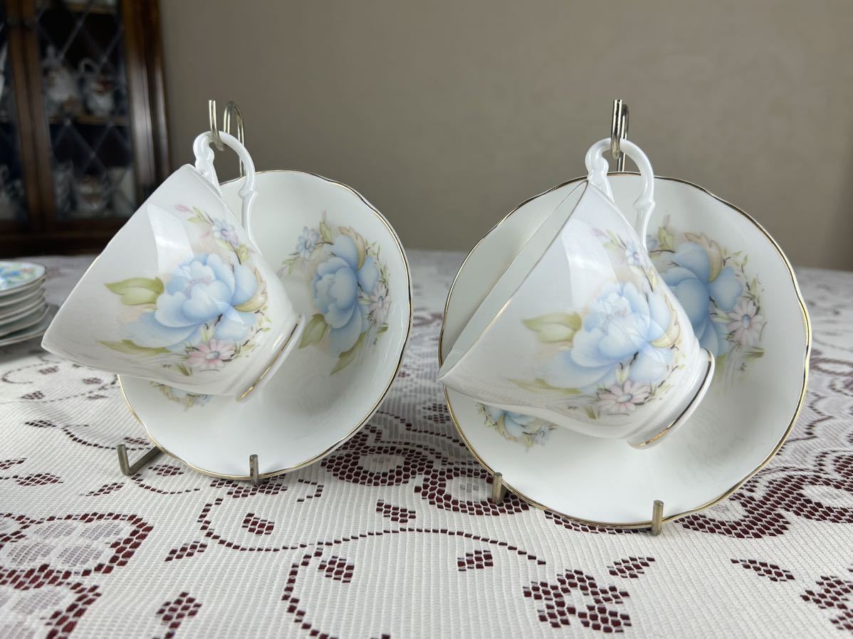 - 英国ヴィンテージ 1950‘s Royal Stuart ロイヤルスチュアート ブルーフローラル カップアンドソーサー 2客