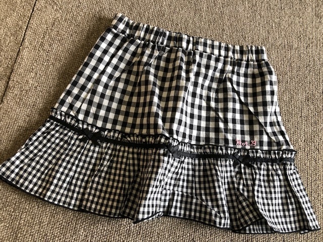 > ★送料\185新品ホットビスケッツギンガムチェックフリルふんわりスカートM100~110★黒