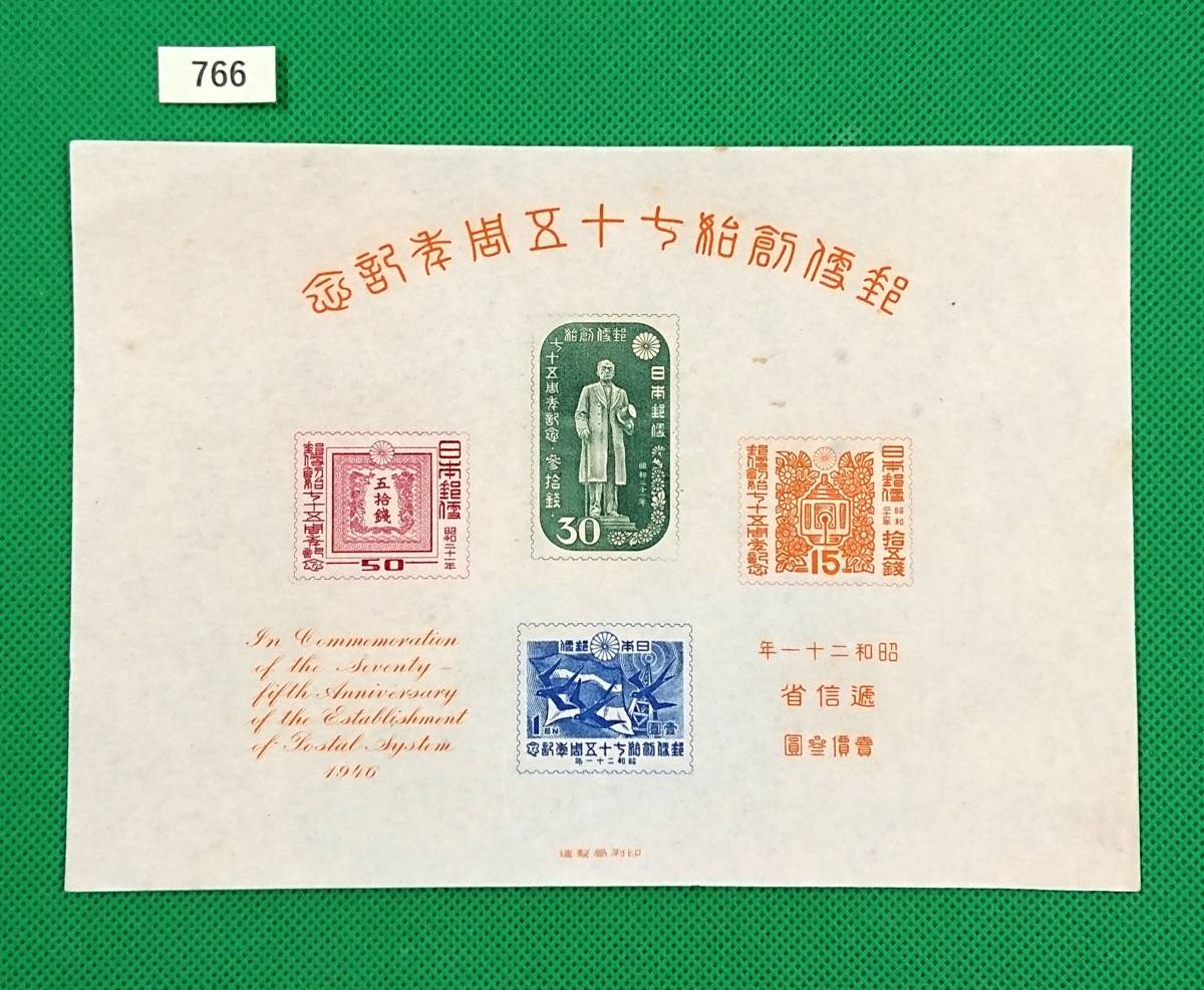 - 郵便創始75年記念/収/小型シート/NH/美品/1946年発行/戦後初販売切手4種の小型シート/希少/昭和レトロ/カタログ価格28,000円/№766