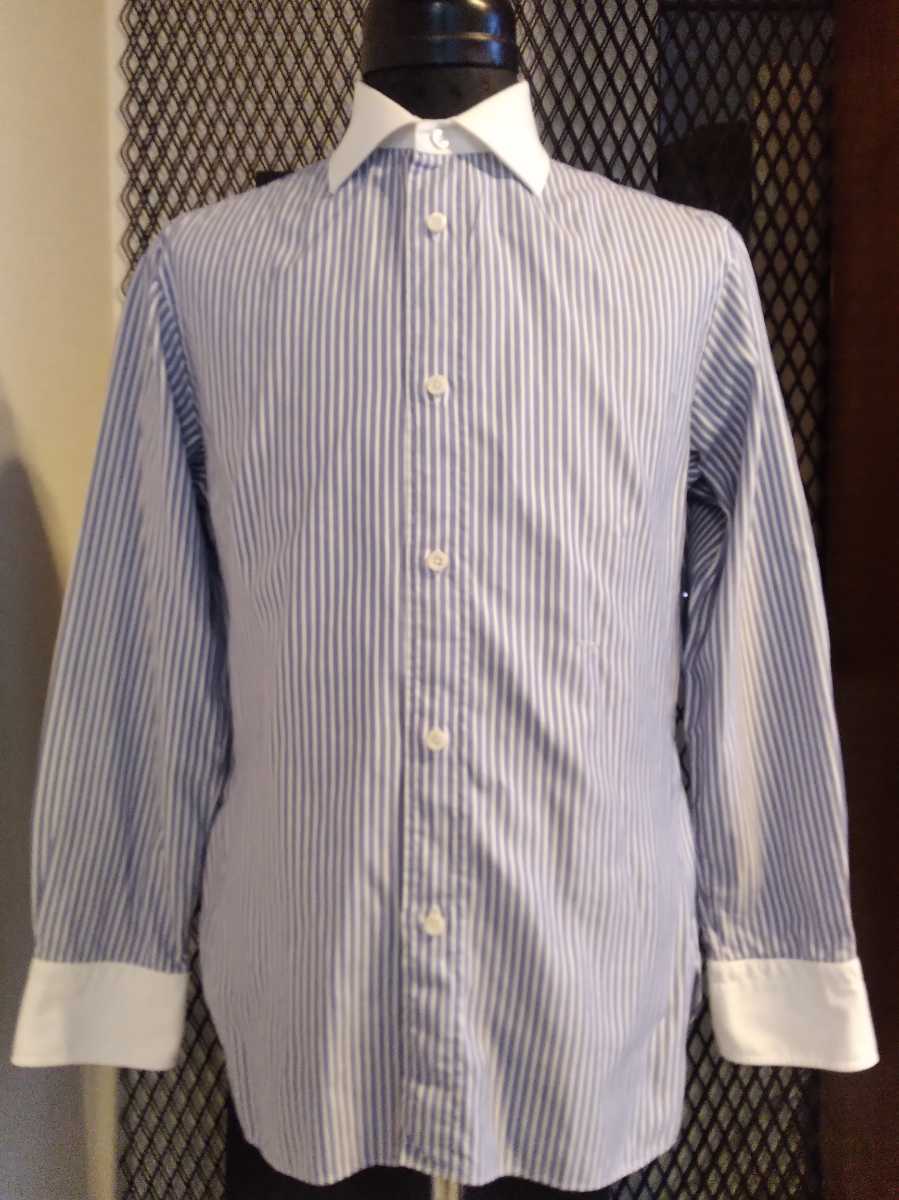 - 【美品】HERMES エルメス Sサイズ 37 14-1/2 クリーニング済 HERMES ブルーストライプXホワイト クレリック