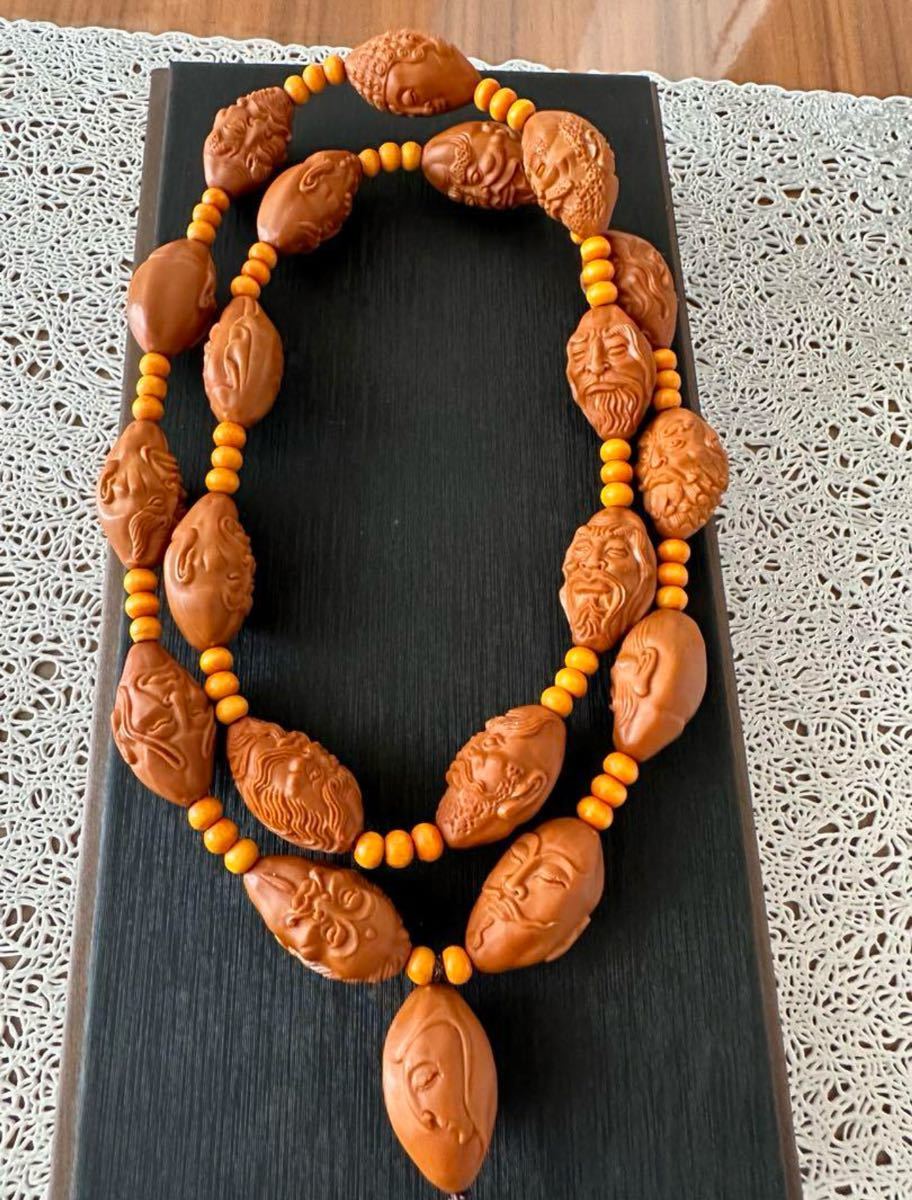 - V-387 文玩 オリーブ核彫刻 十八羅漢 ルドラクシャ ネックレス お守り