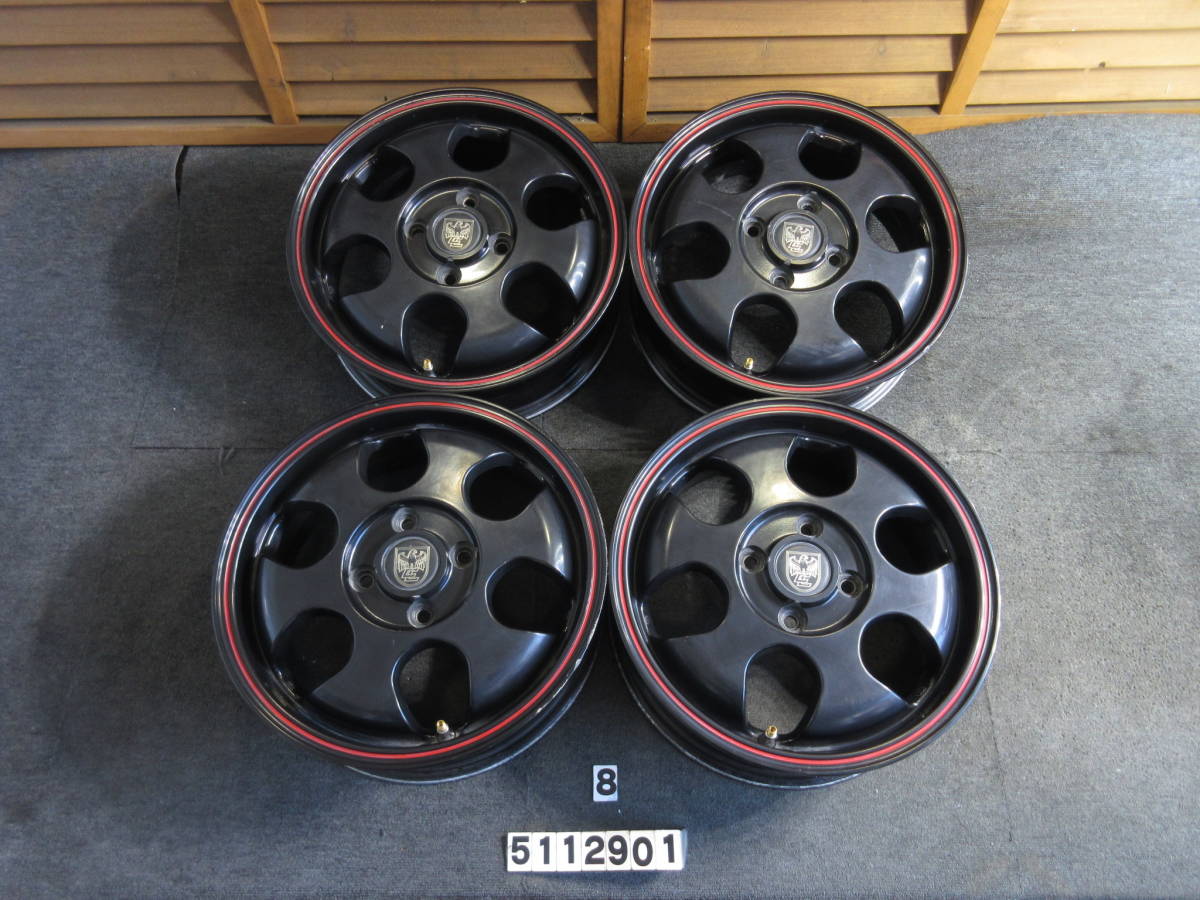 > G1583 ②★アルミ4本セット★黒 ブラック★14インチ5J+45 4穴PCD100★ワゴンR アルト スペーシア タント ミラ ムーヴ N-WGN N-ONE