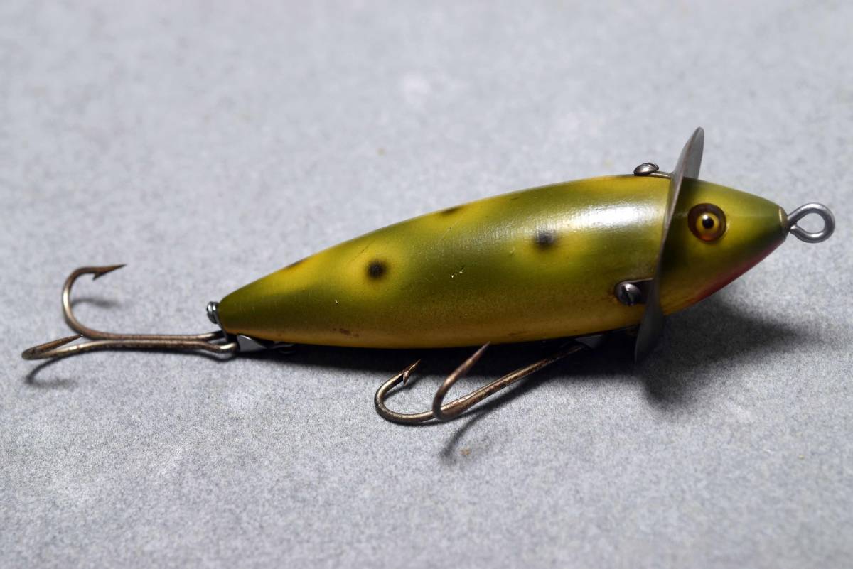- VINTAGE WOODEN LURE HEDDON 210SURFACE C1917 GLASS EYES FROG( 4048-7A)USA MADE #OLDLURE #ARTLURE_VINTAGE frog collection
