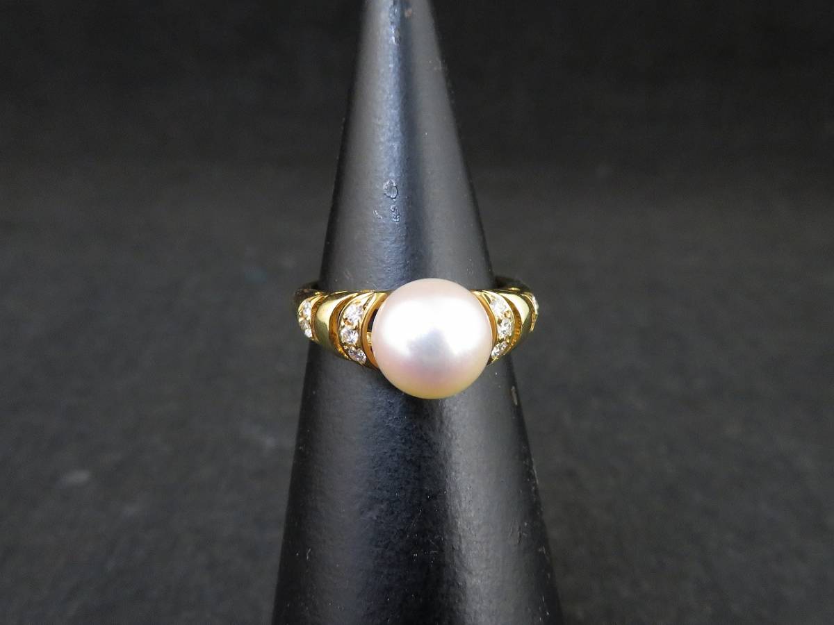 - MIKIMOTO ミキモト 750 K18YG パール リング 8.1mm珠 ダイヤモンド 指輪 9号