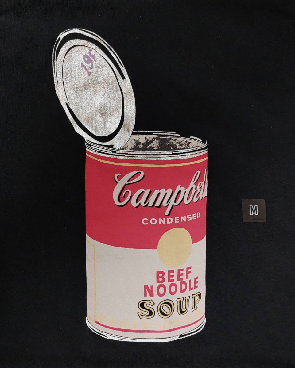 > 2018 OPEN缶 UNIQLO×Andy Warhol コラボ SPRZ NY T 丸首 半袖 黒 前左袖プリント『Campbell‘s BEEF NOODLE SOUP』M・身幅約50cm※未使用