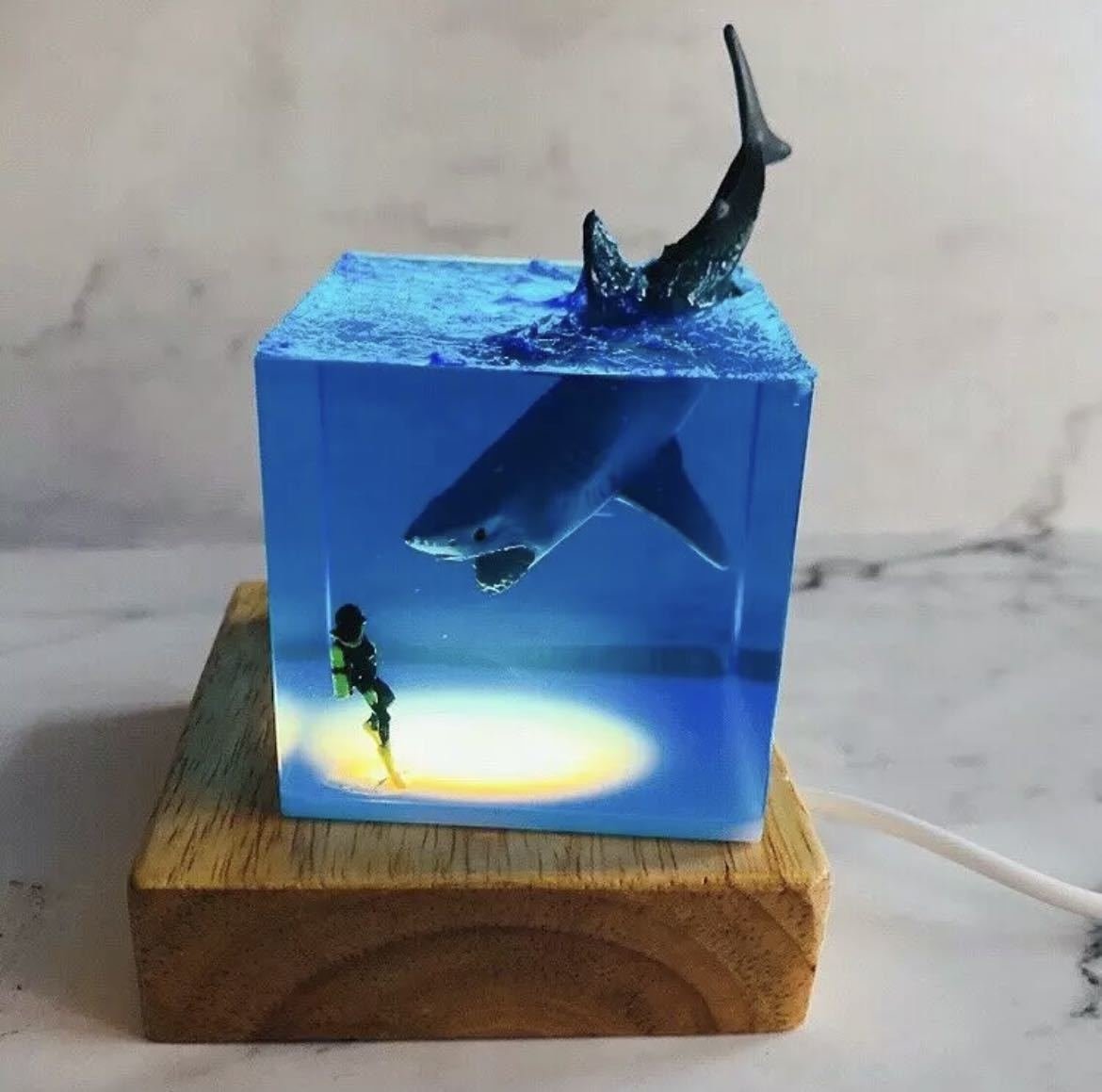 - ダイバー サメ ライト フィギュア インテリア 装飾 オブジェ 置物 アート 海 鮫DJ951