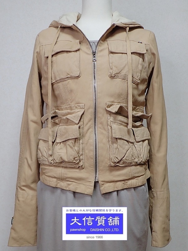> EVER エヴァー レディース トップス レザージャケット フード付き ブルゾン サイズS ベージュ 中古B 【送料無料】 A-6469