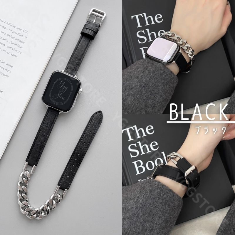 - アップルウォッチ 多重 二重巻き チェーン レザー コンビ バンド W ダブル applewatch グルメット ステンレス 42 44 45 49 黒 ブラック