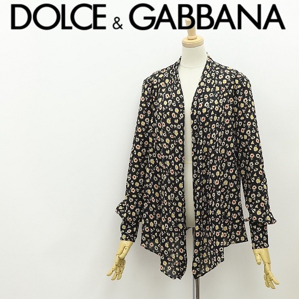 - ◆DOLCE&GABBANA ドルチェ&ガッバーナ シルク 花柄 シフォン カシュクール ブラウス カーディガン 黒 ブラック 38