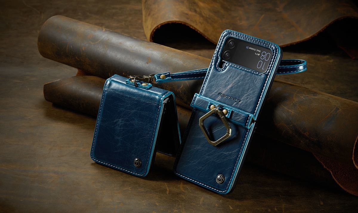 > Galaxy Z Flip4 レザーケース SC-54C | SCG17 背面保護 全面保護 カメラ保護 Qi充電 ワイヤレス充電対応 ギャラクシー Z フリップ4 ブルー