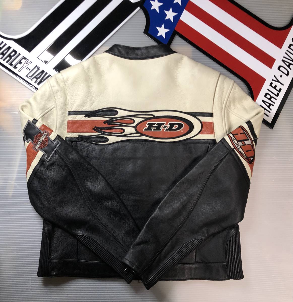 - 【レアモデル!入手困難】極美品★ハーレーダビッドソン 本革製ライダースジャケット★前面・背面・両袖・立体刺繍モデル!★