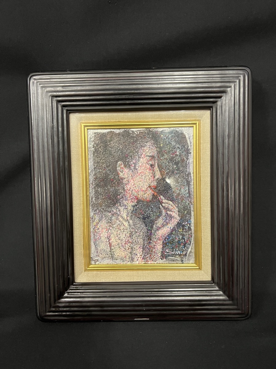 『キャンバス 輪島進一「口紅」0号 肉筆 人物画 真作 本物保証』