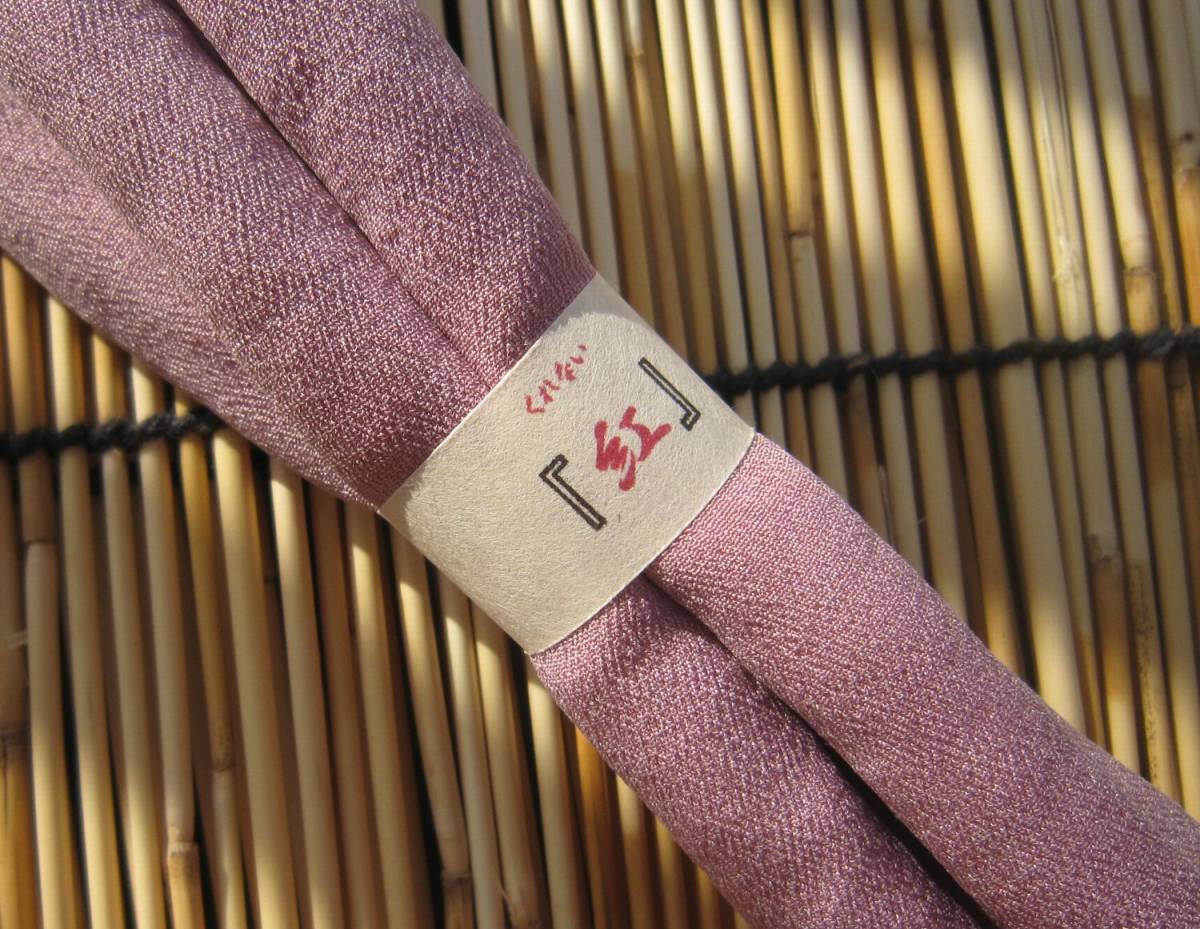 - ◇◆『紅』アンティーク・正絹古縮緬 無地 灰桃色 丸ぐけ帯締め29