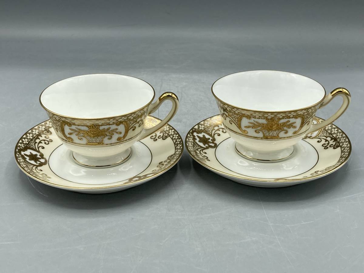 - 里帰り ノリタケ フラワーバスケット 2客 カップ&ソーサー 金彩 お花 マルキ印 (No.14) # カップアンドソーサー