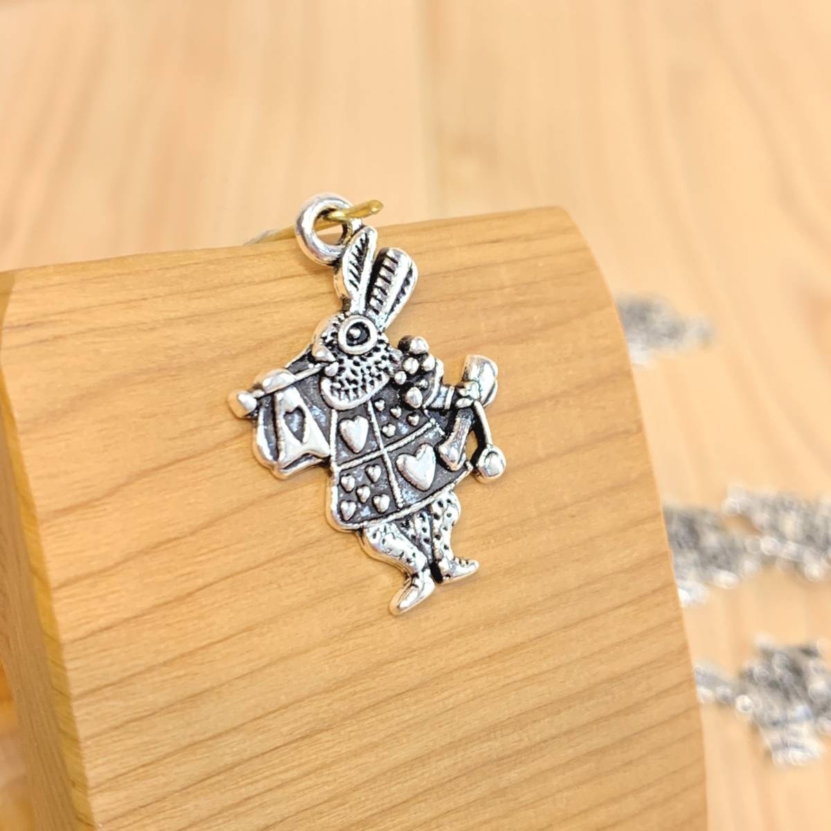 - ハンドメイド クラフト パーツ チャーム 不思議の国のアリス 白ウサギ 5個 シルバー