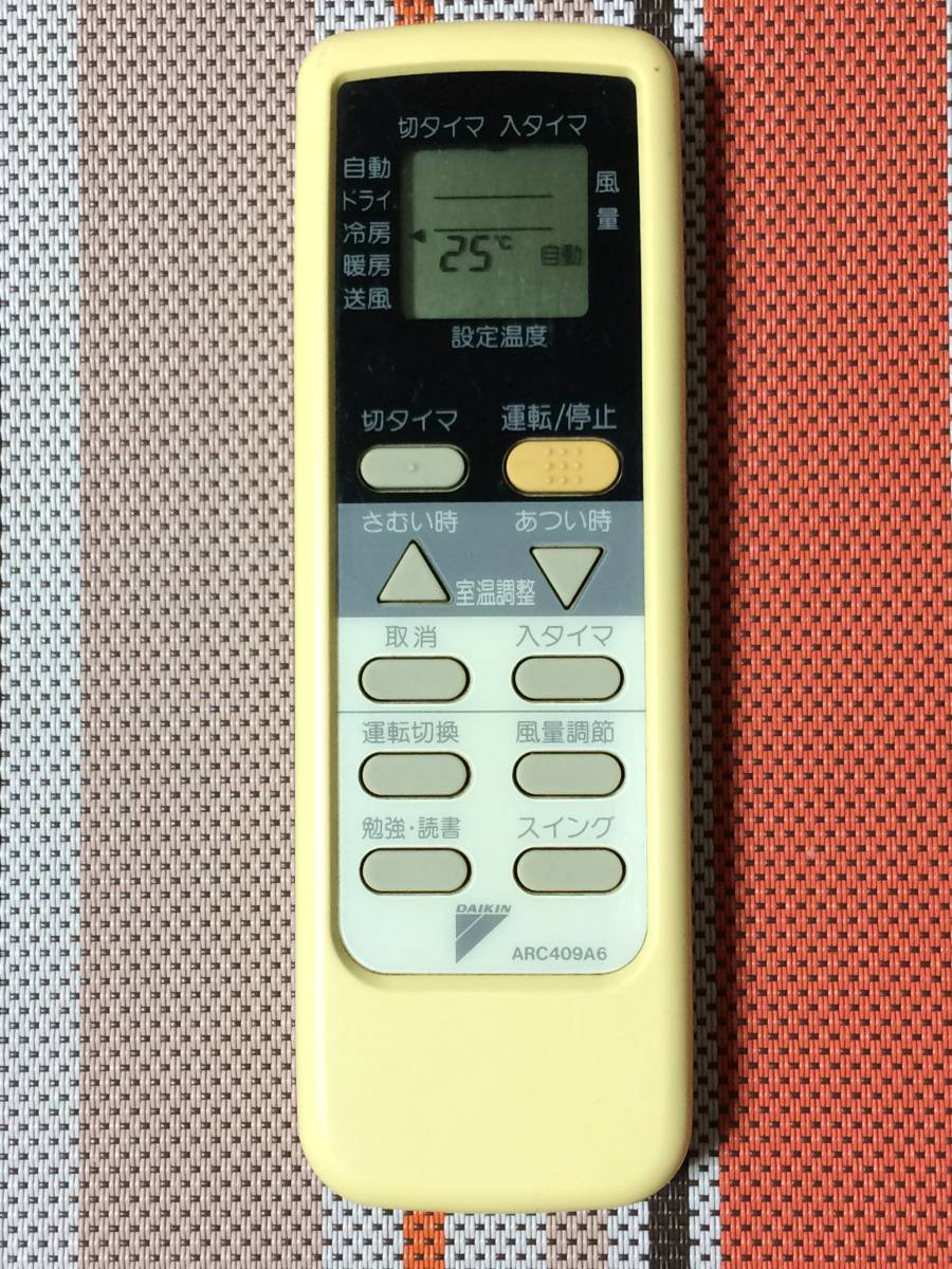 - 黄ばみあり★送料無料★DAIKIN★ダイキン★純正★エアコン用リモコン★ARC409A6★中古★動作品★返金保証あり★