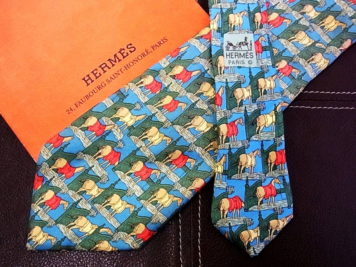 - 【在庫処分セール】5-9702z◆エルメス【馬】「HERMES」ネクタイ◆