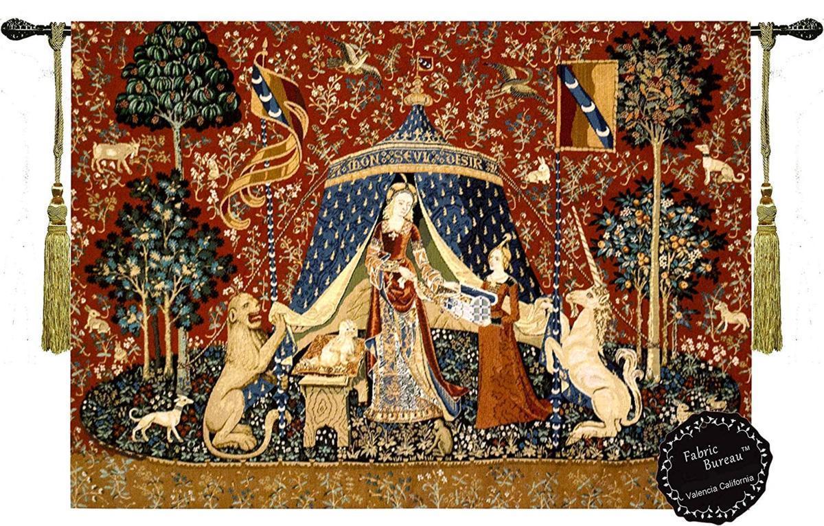 > 西洋美術 貴婦人と一角獣(ユニコーン) ジャガード織り幅119cmx長さ 85cmタペストリー新築祝い応接室インテリア輸入品