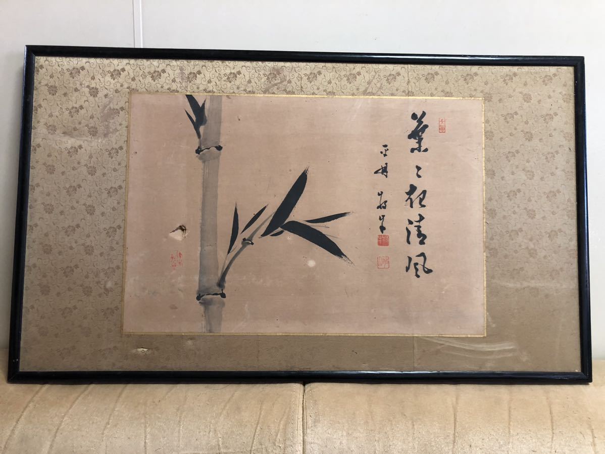 - 襖絵 水墨画 紙本 墨竹図 竹林 禅語 「葉々起清風」(虚堂録)天大山 茶湯一会集 茶道具 幅84.5cm 直筆