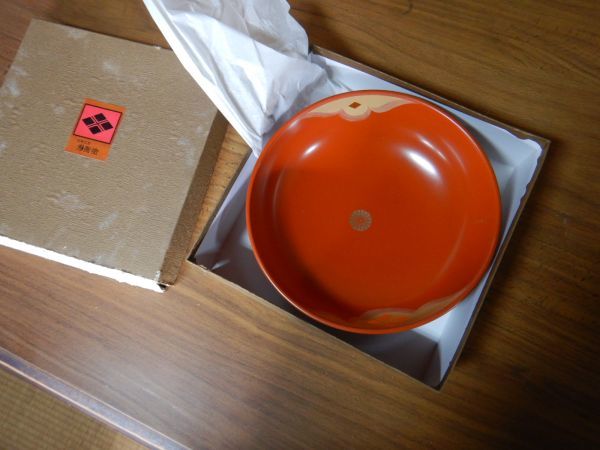 - 秀衡塗り 御紋 菓子皿111701 20H6CM 木皿 岩手 平泉 盛岡 未使用