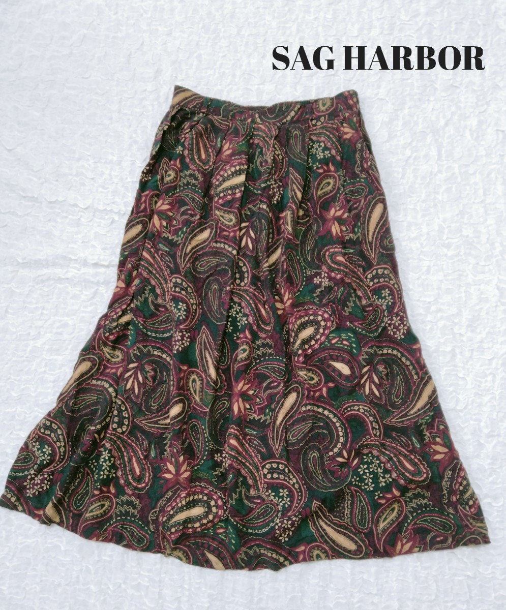 > ヴィンテージ レトロ 古着 SAG HARBOR サグハーバー 総柄 ペイズリー柄 膝丈 スカート Lサイズ位 ウエストゴム*レーヨン
