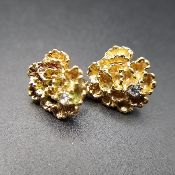 - AVON 植物モチーフ 米国 ビンテージ イヤリング ゴールドトーン ラインストーンアクセント コスチュームジュエリー フローラル SOJ54