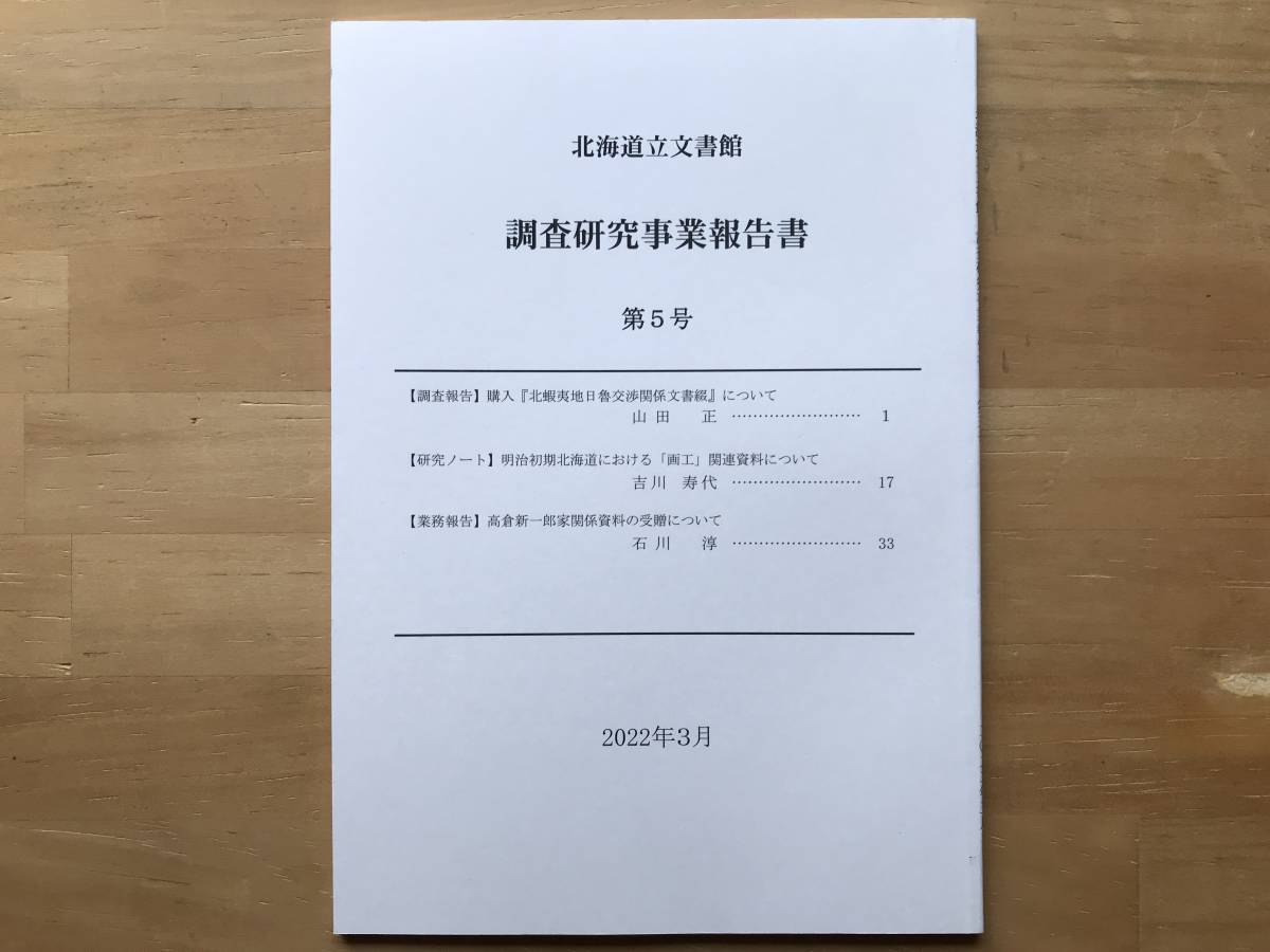 - 『北海道立文書館 調査研究事業報告書 第5号』山田正「購入『北蝦夷地日魯交渉関係文書綴』について」・吉川寿代・石川淳 2022年刊 08786
