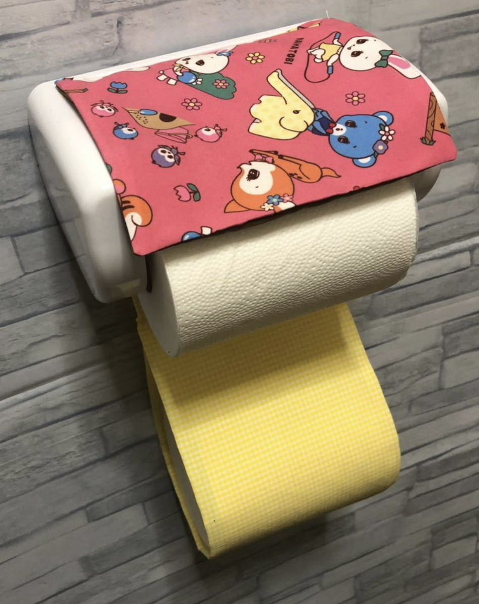 - レトロ柄 トイレットペーパーホルダーカバー 昭和 レトロ ペーパーホルダーカバー ハンドメイド ピンク