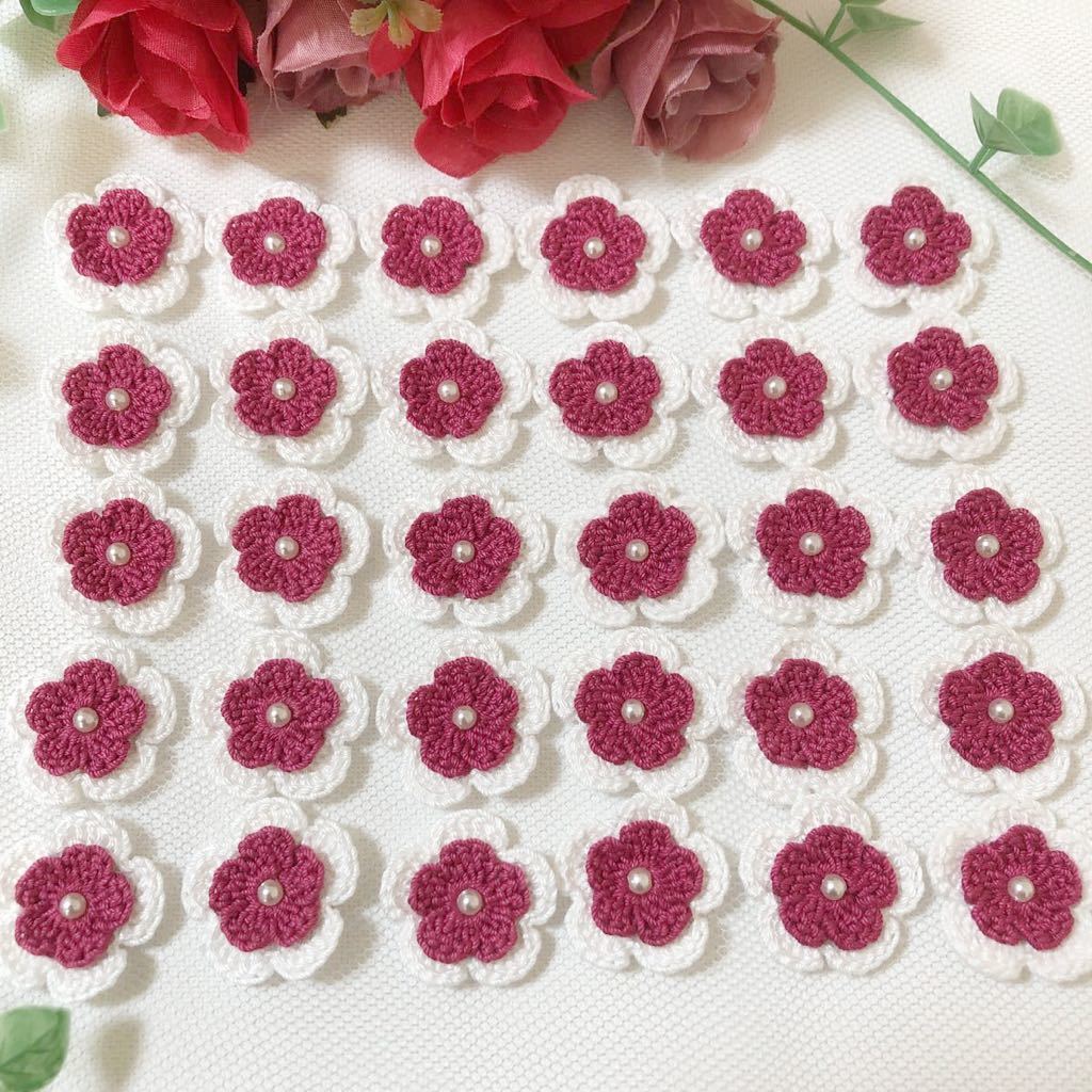 - **(No.156)2重お花(^^)☆ハンドメイド☆【濃いピンク&ホワイト】レース糸 モチーフ パーツ等に