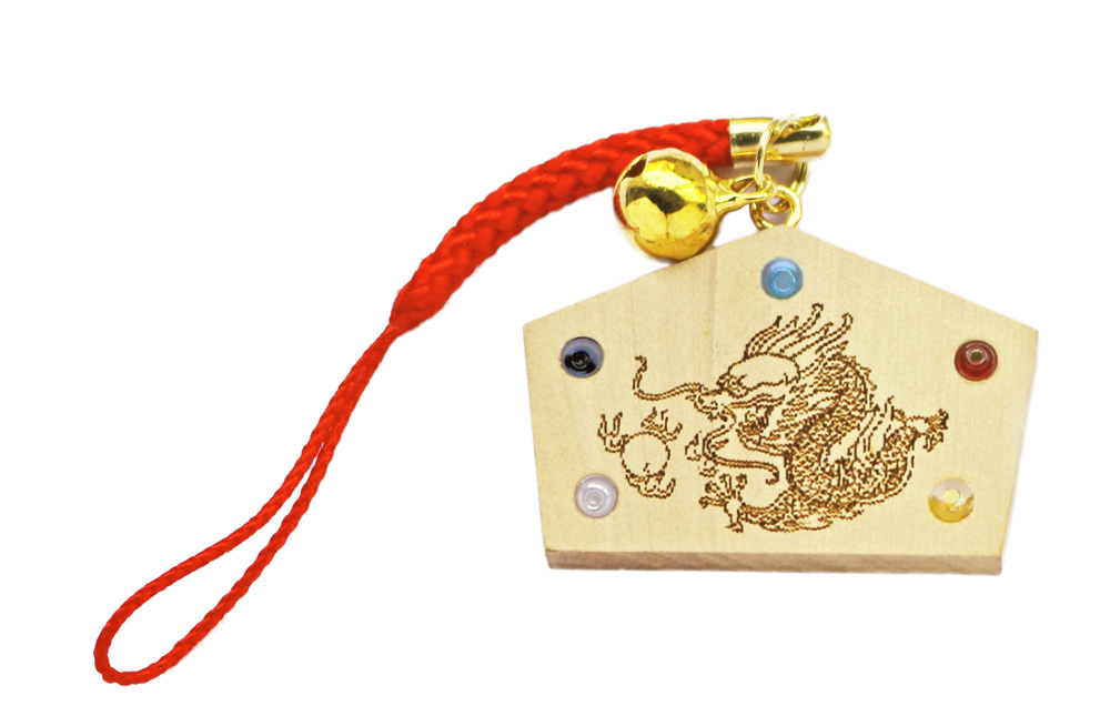 - 龍デザイン 根付兼用絵馬ストラップ(陰陽五行色)赤色紐