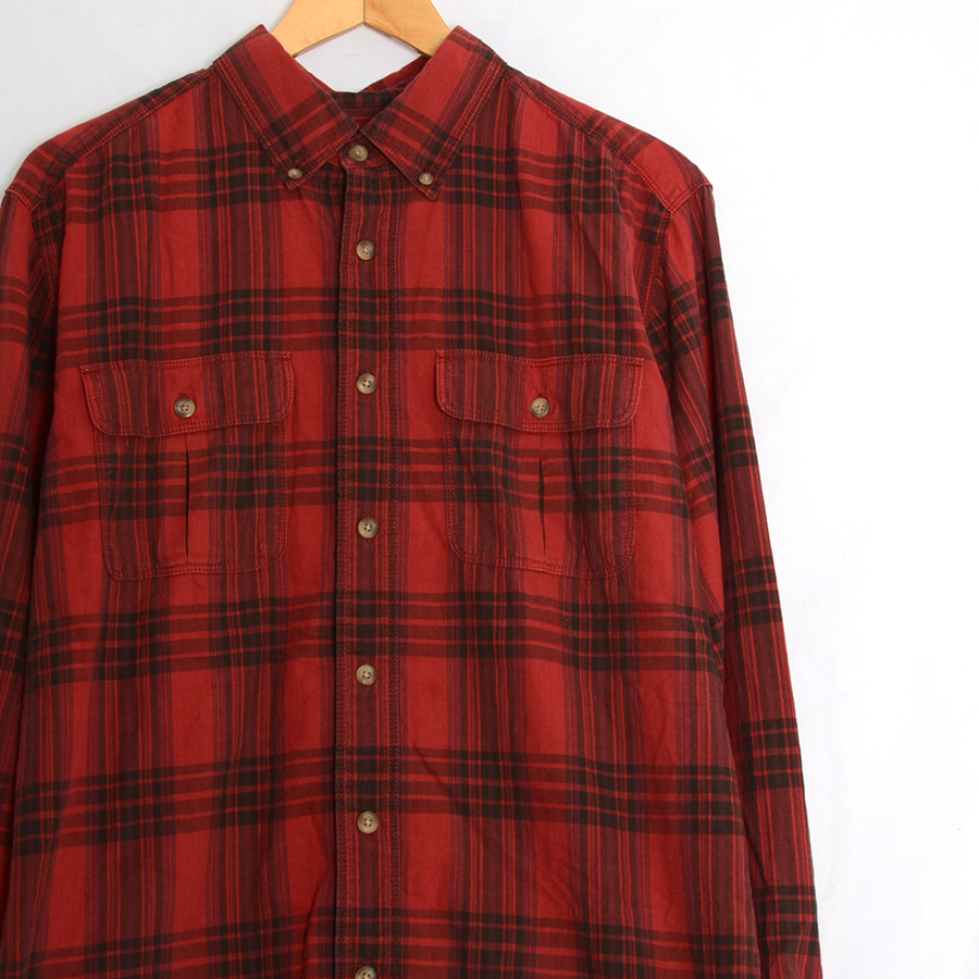 - AS6367 エディーバウアー 長袖シャツ L 肩47 ボタンダウン 格子柄 メ-ル便可 xq