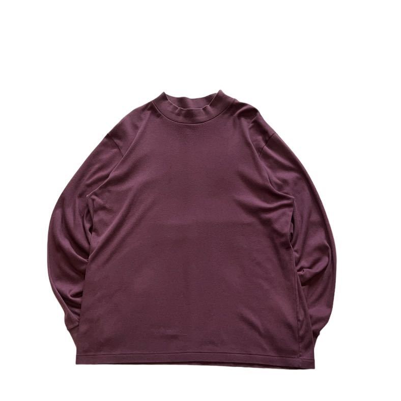 > 【USA製】 90s LANDS'END ランズエンド モックネック ハイネック 長袖 Tシャツ ロンT メンズ XL ボルドー ワインレッド アメリカ製 古着
