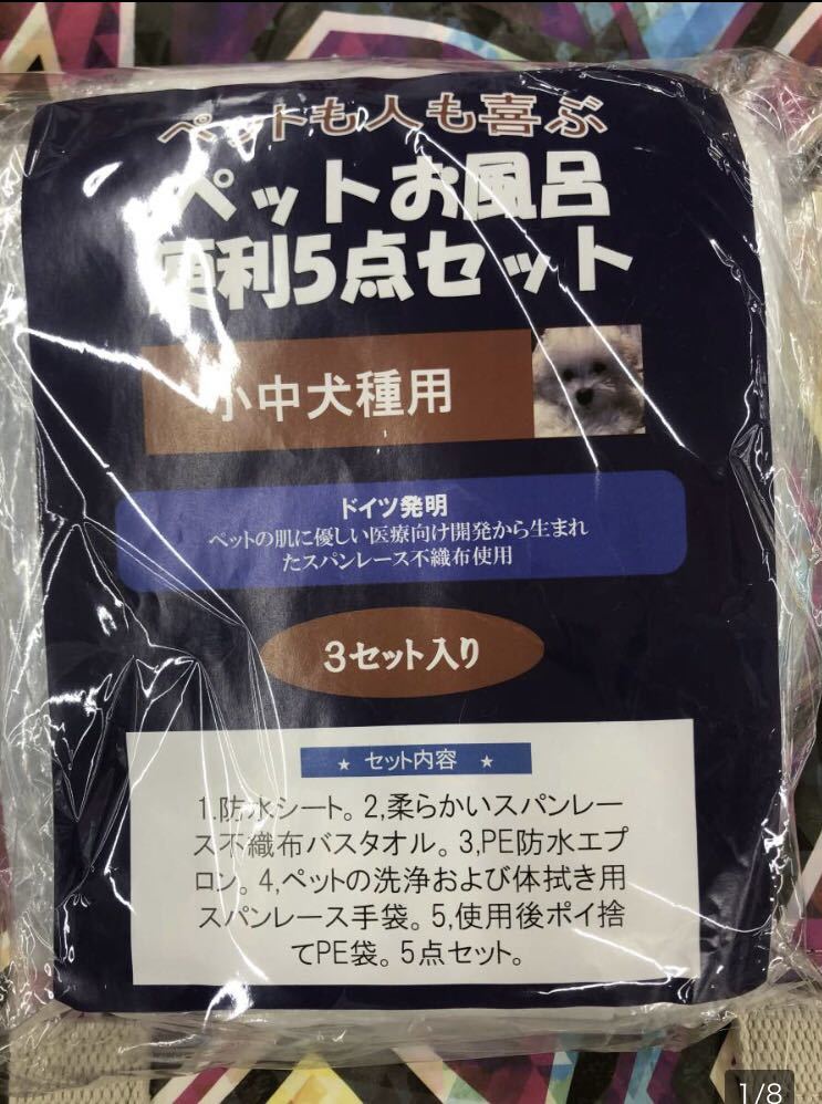 - 新品・袋入り・ペットお風呂便利5点セット×3個セット 使い捨て 小・中型犬用、成猫でも