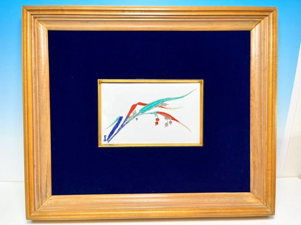 - ☆ 十三代 酒井田柿右衛門 錦 数珠玉文 陶額 陶板 サイン有