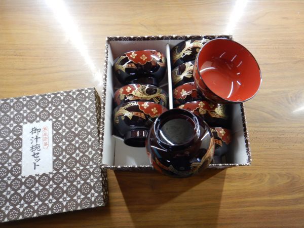 - 美術漆器 御汁椀 10ツセット010801 11.5h6cm 汁椀食器010801 使用感少