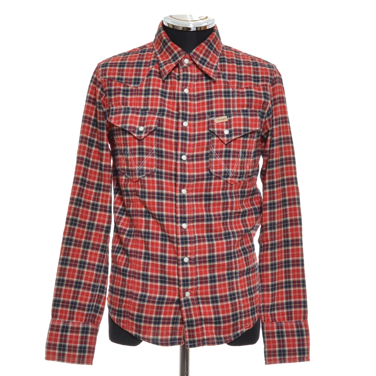 > ●353888 AKM × Wrangler ラングラー wjk ●チェックウエスタンシャツ ロングスリーブ 長袖 S9086 サイズS 綿100% メンズ レッド