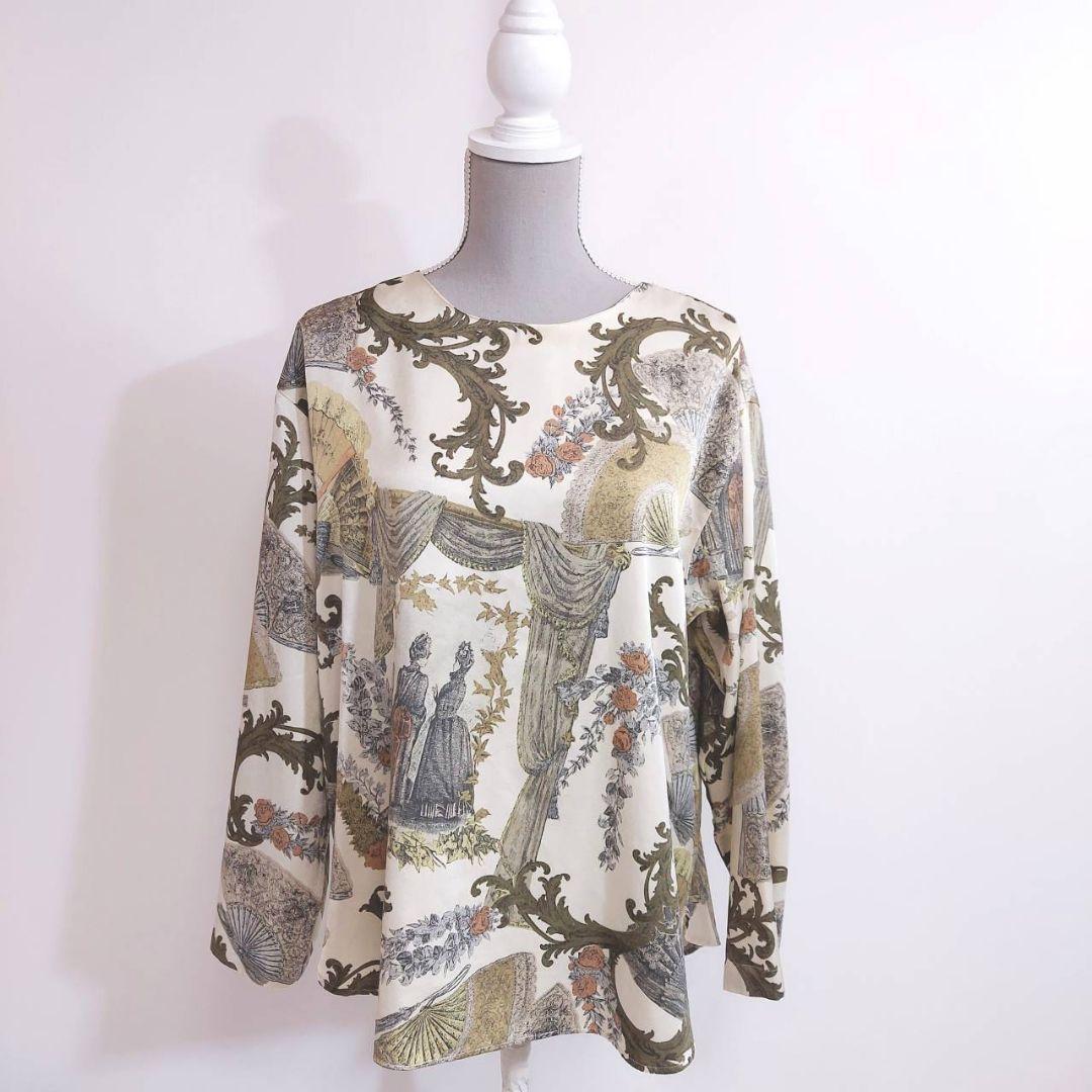 - レトロ古着 ヨーロピアン総柄 シルク調 プルオーバー長袖トップス 総柄 66366