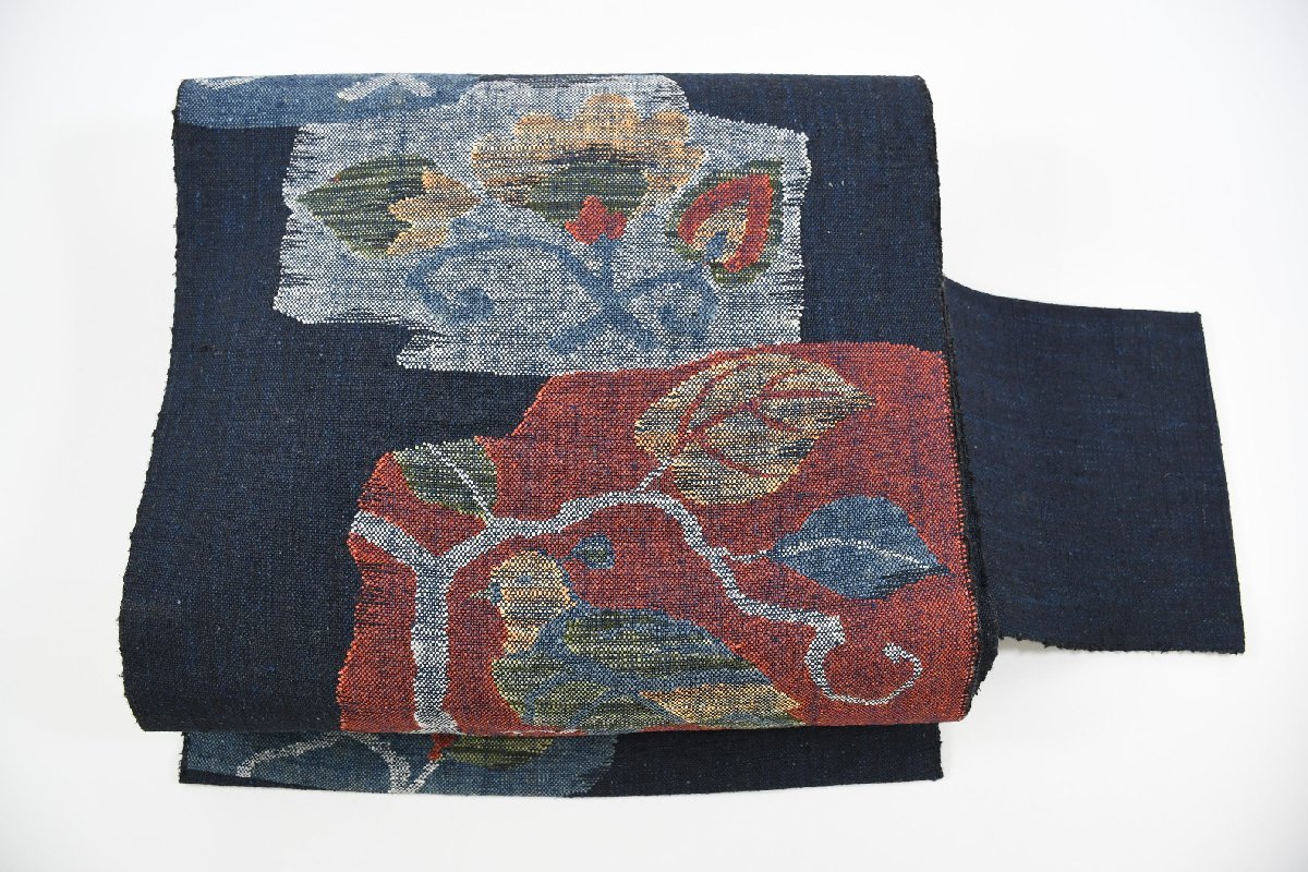 - 袋名古屋帯 花 葉 松葉仕立て 帯丈354cm ★着物屋 ne-7225 桜庭呉服店