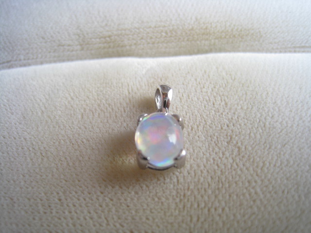 - [SAMU]素敵!!虹色 綺麗遊色天然オパール k10ホワイトゴールドペンダント★美品!
