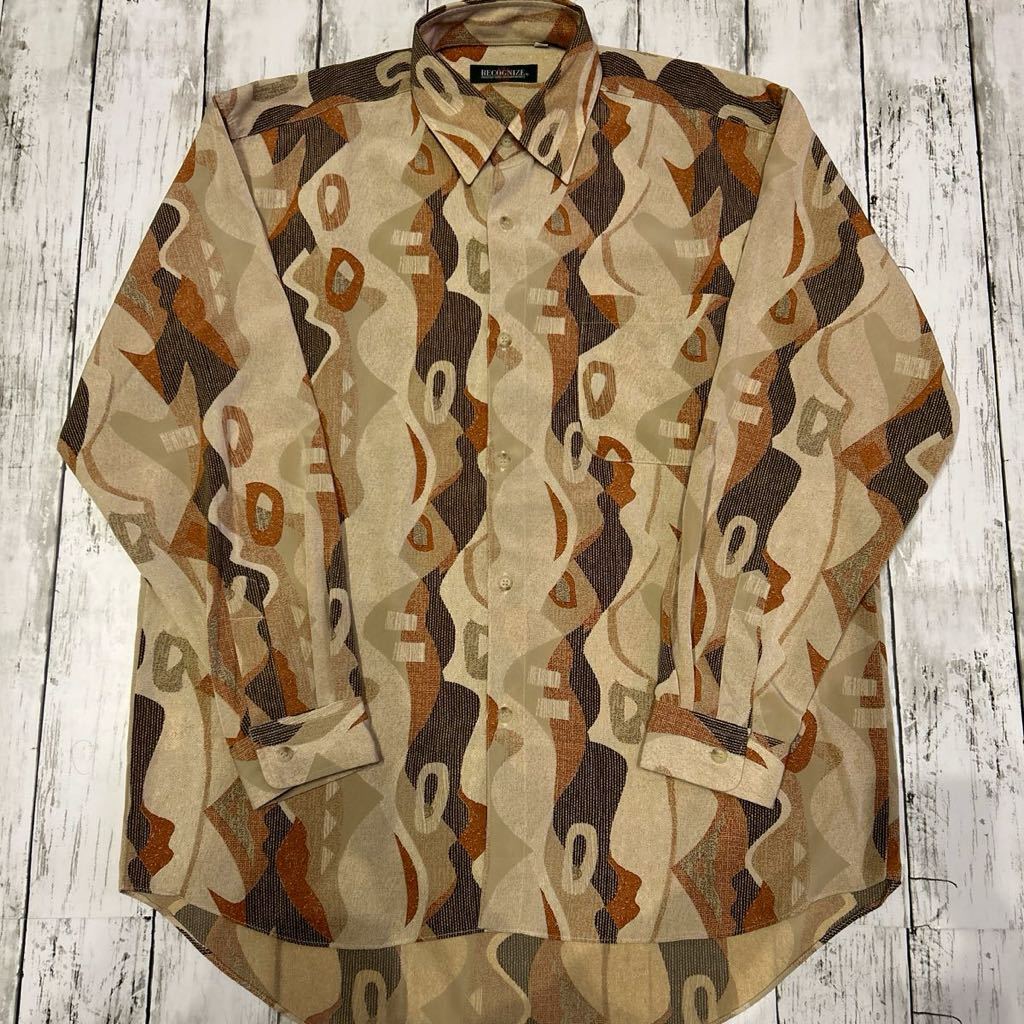 - RECOGNIZE 総柄 柄シャツ レトロ アート ビンテージ 長袖シャツ ポリエステル
