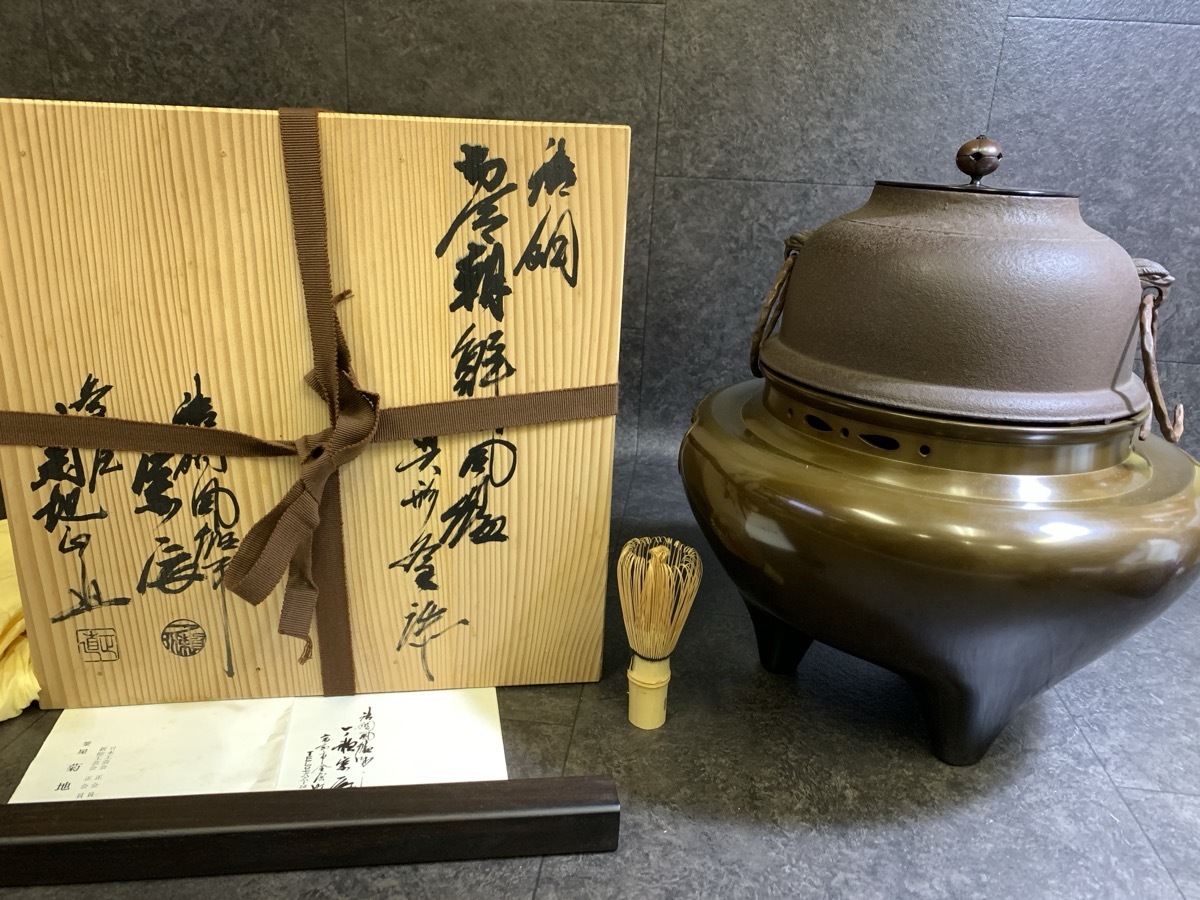 『未使用 唐銅朝鮮風炉釜 真形釜添 風炉:一ノ瀬宗辰 釜:菊地正直 共箱 茶道具 表千家 鉄釜』