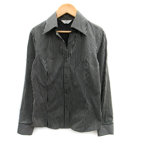 > ビアッジョブルー Viaggio Blu シャツ ブラウス 長袖 スキッパーカラー ストライプ柄 2 黒 ブラック 白 ホワイト /SM5 レディース